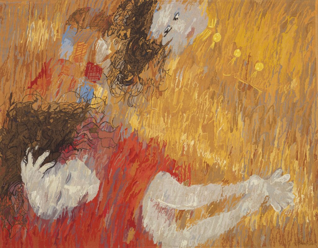 Image: Arthur Boyd, designer, Tapeçarias de Portalegre, manufacturer, St Francis when young dreaming of fine clothes and armour 1973, dyed wool on cotton high-warp tapestry, 263.0 (H) x 340.0 (W) cm. National Gallery of Australia, Canberra. Reproduced with the permission of Bundanon Trust.